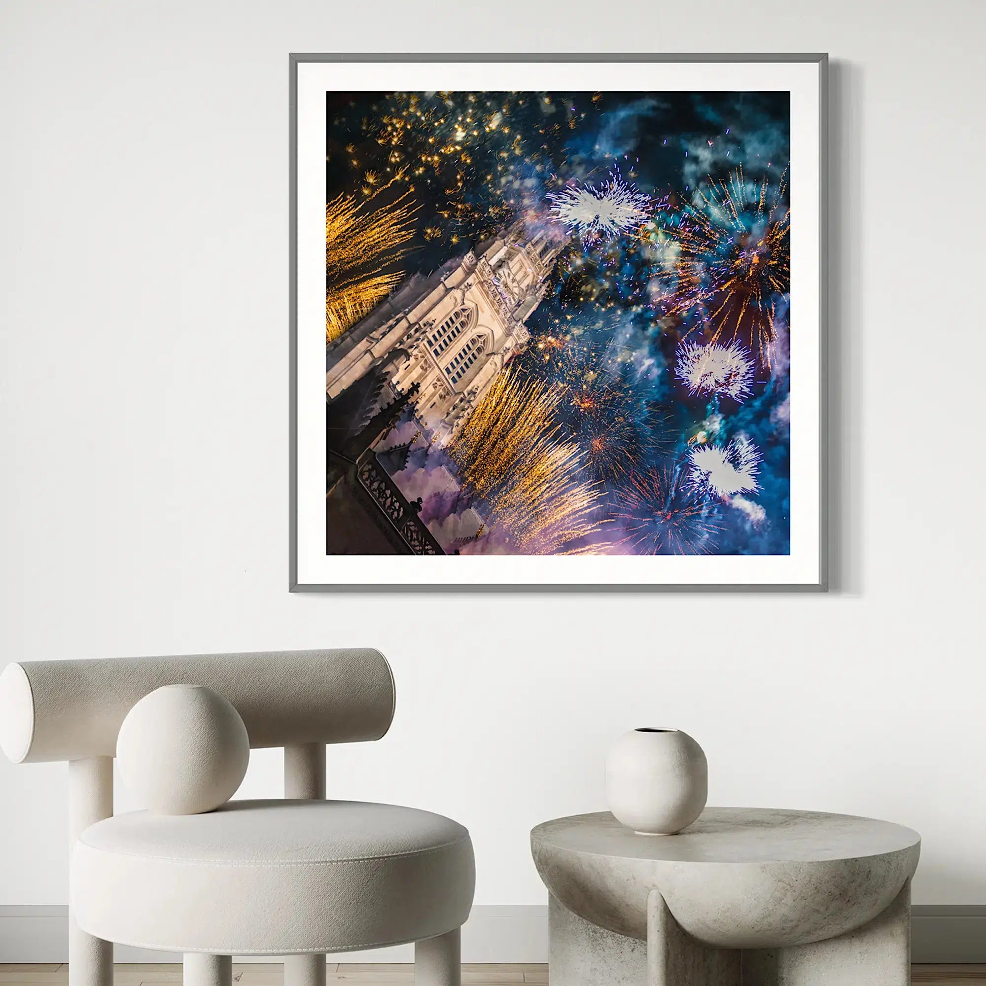 Lors de l'embrasement du Beffroi d'Arras, cette photographie du bouquet final enchantera votre intérieur.