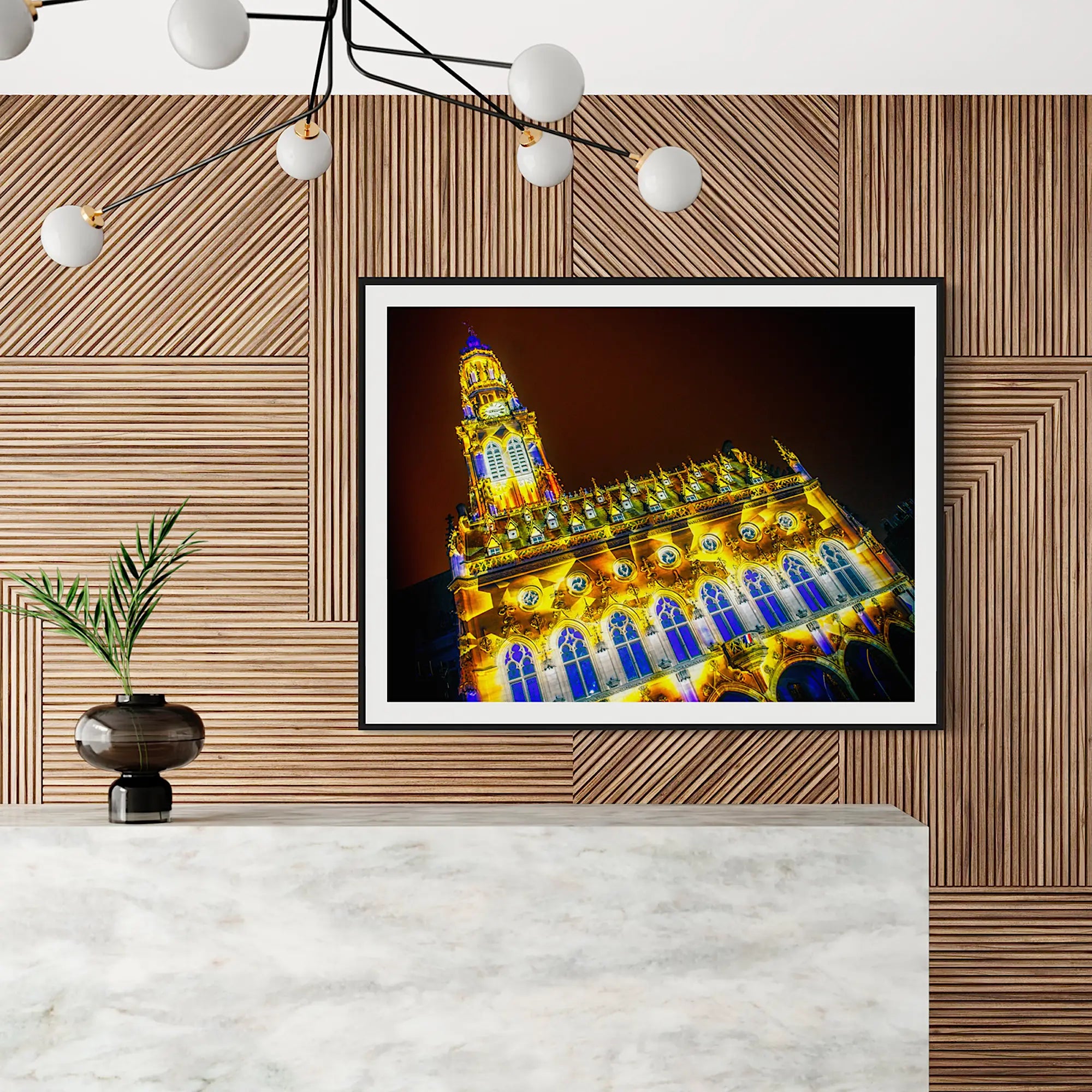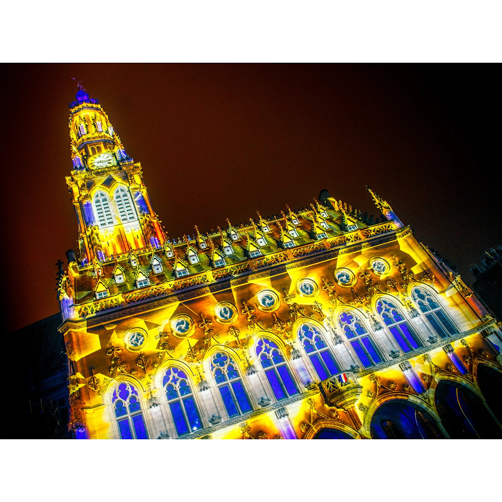 Photographié lors d'un mapping, les détails architecturaux sont bien mis en valeurs par cet éclairage puissant et moderne.