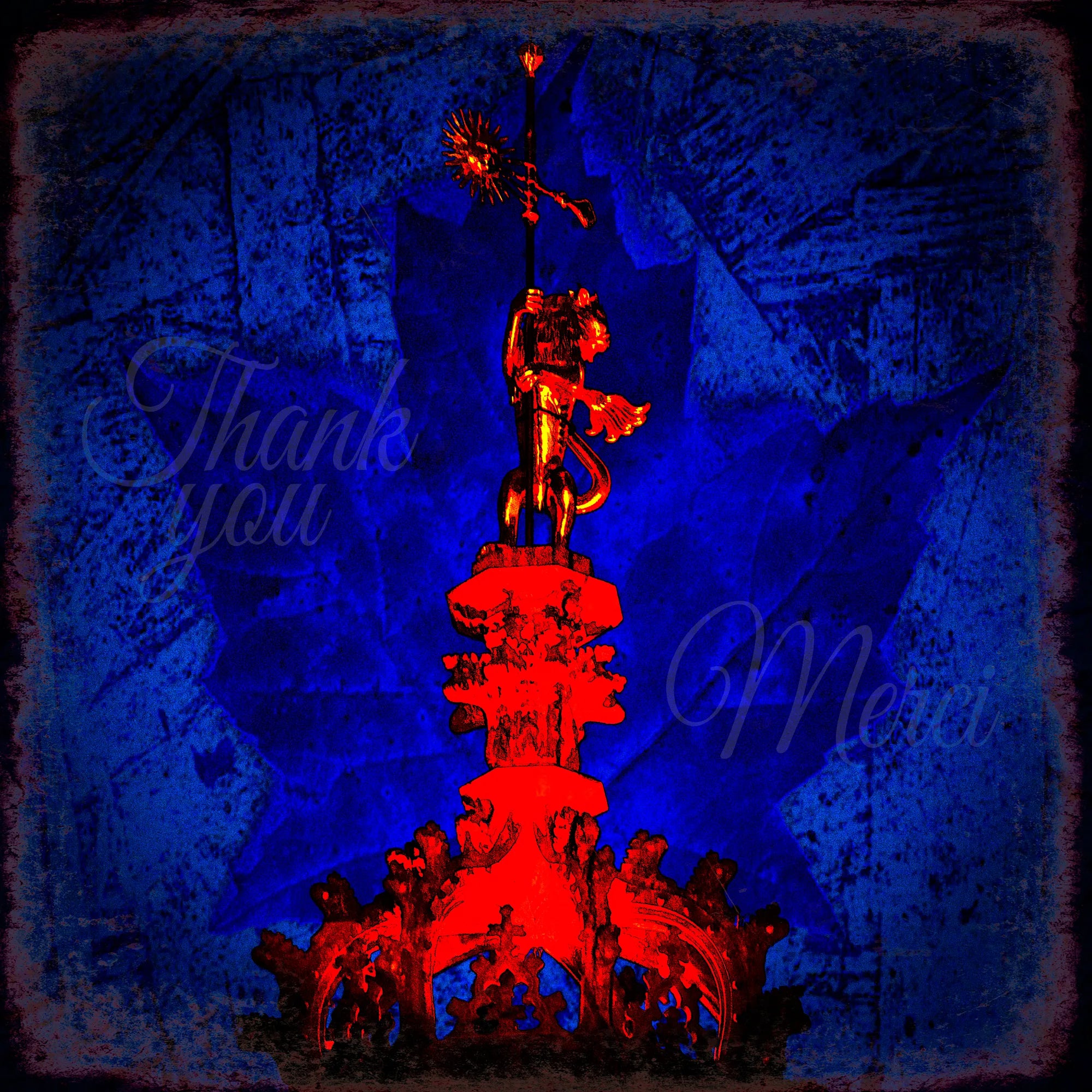 Le lion d'Arras vous dit merci, une photographie particulièrement réussie du lion trônant fièrement au dessus du beffroi d'Arras.