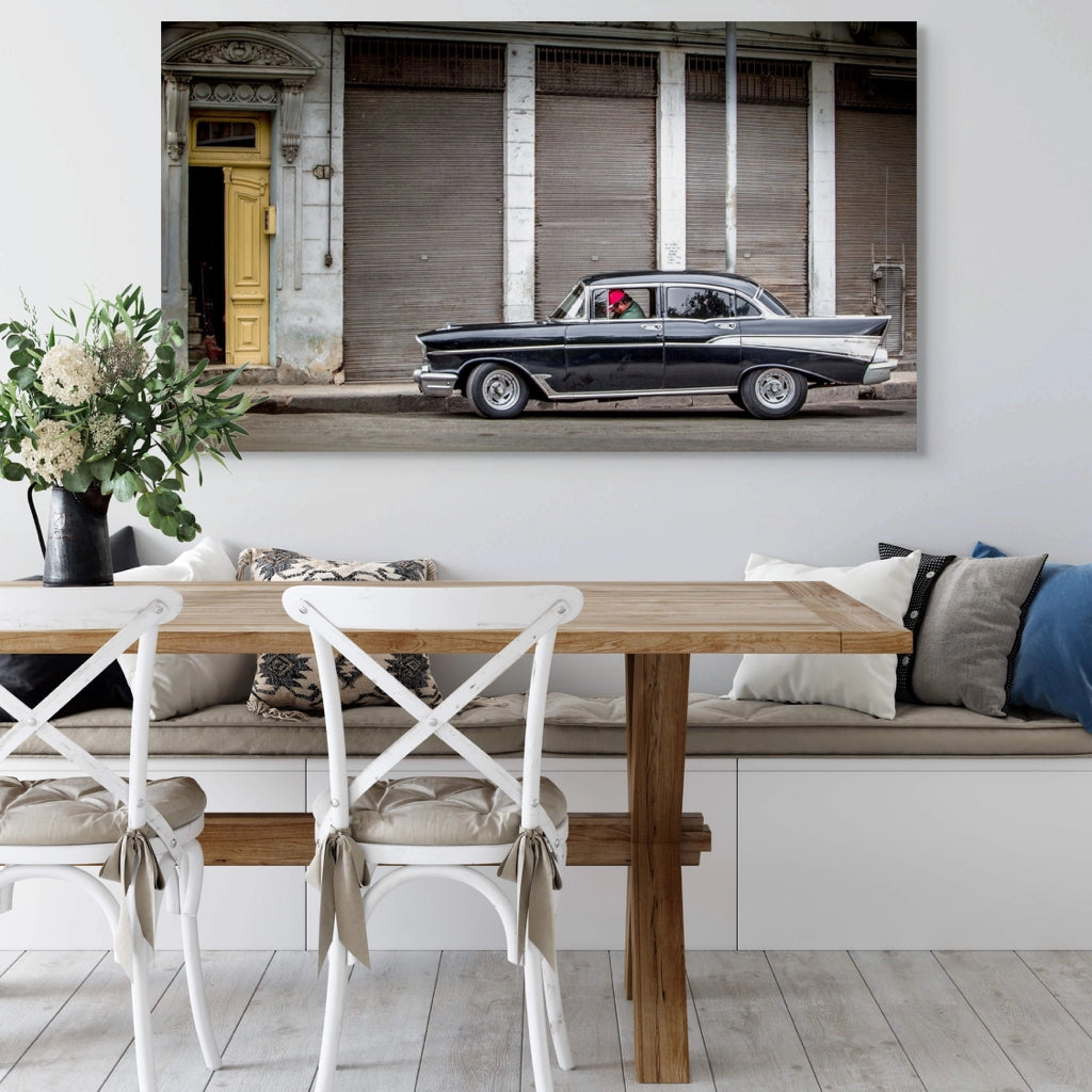 L’atmosphère rétro et la lumière douce renforcent l’âme unique de cette image, idéale pour une décoration murale raffinée. Parfaite pour les amateurs de voitures classiques, de photographie de rue et d’ambiances vintage, cette œuvre transporte immédiatement dans les rues vibrantes de La Havane.