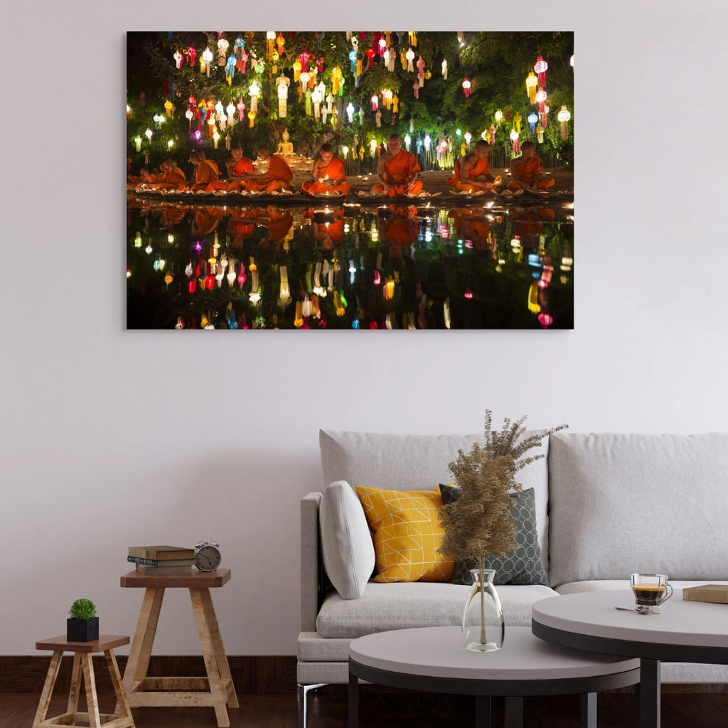 Ces moines tibétains dans une ambiance nocturne reposante, sont alignés le long de l'eau et éclairés par des lanternes colorées, en prière. Un spectacle unique qui apaise l'esprit et inspire la paix intérieure. Venez découvrir la spiritualité bouddhiste à travers ces moines passionnés.