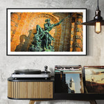 This reworked photograph of the Neptune fountain in Arras , perfectly captures the moment when Neptune brandishes his trident and slays a fish, providing a striking spectacle.