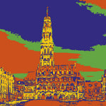 The original photo of the Belfry of Arras was transformed following the precepts of Andy Warhol, respecting the color ranges.