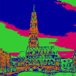 The original photo of the Belfry of Arras was transformed following the precepts of Andy Warhol, respecting the color ranges.