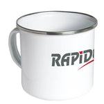 White enamel mug with aluminum rim.