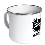 White enamel mug with aluminum rim.