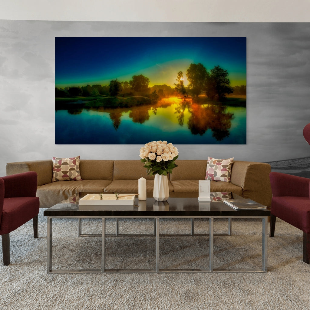 Enjoy the natural beauty of the Arras Golf Course with this captivating photograph. With its spectacular sunrise and vibrant green and yellow colors, this photo will transport you to the heart of this peaceful landscape. A perfect addition to any art collection that will bring a sense of calm and serenity to your room.