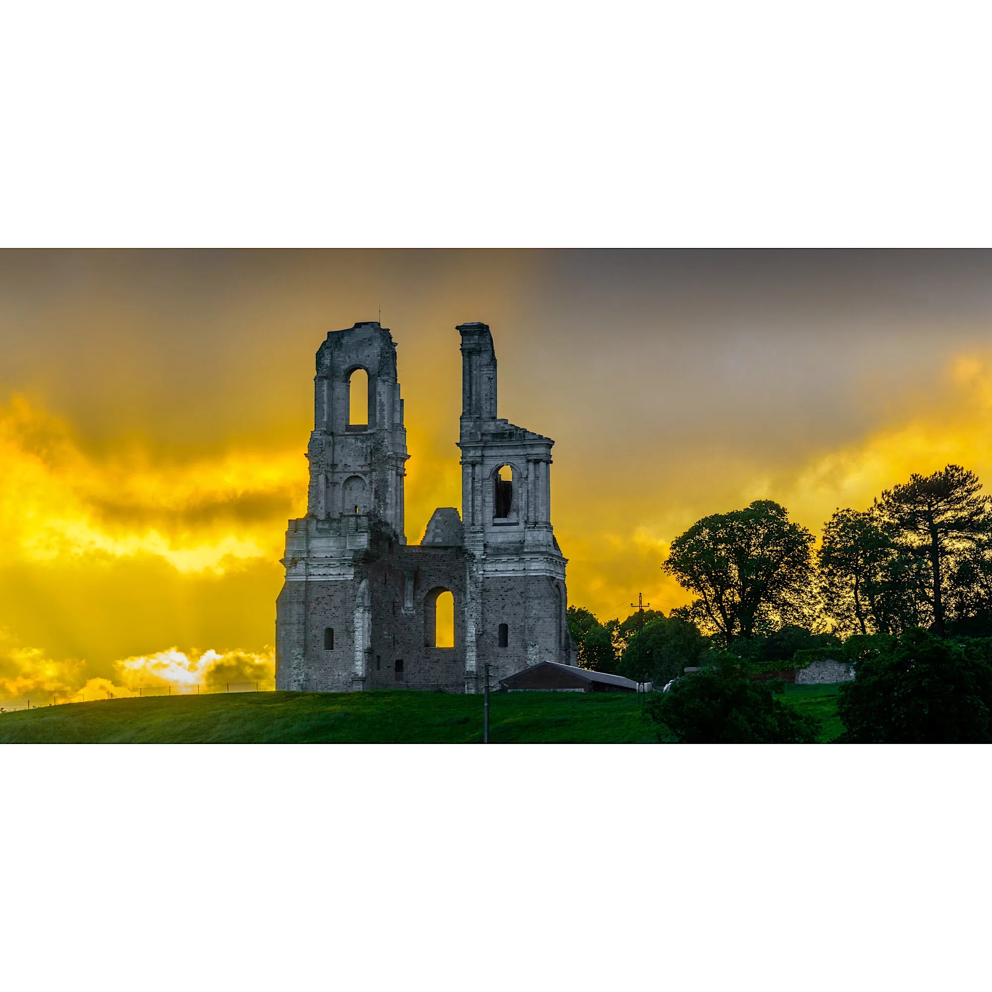The ruins of the Mont-Saint-Eloi abbey at sunset