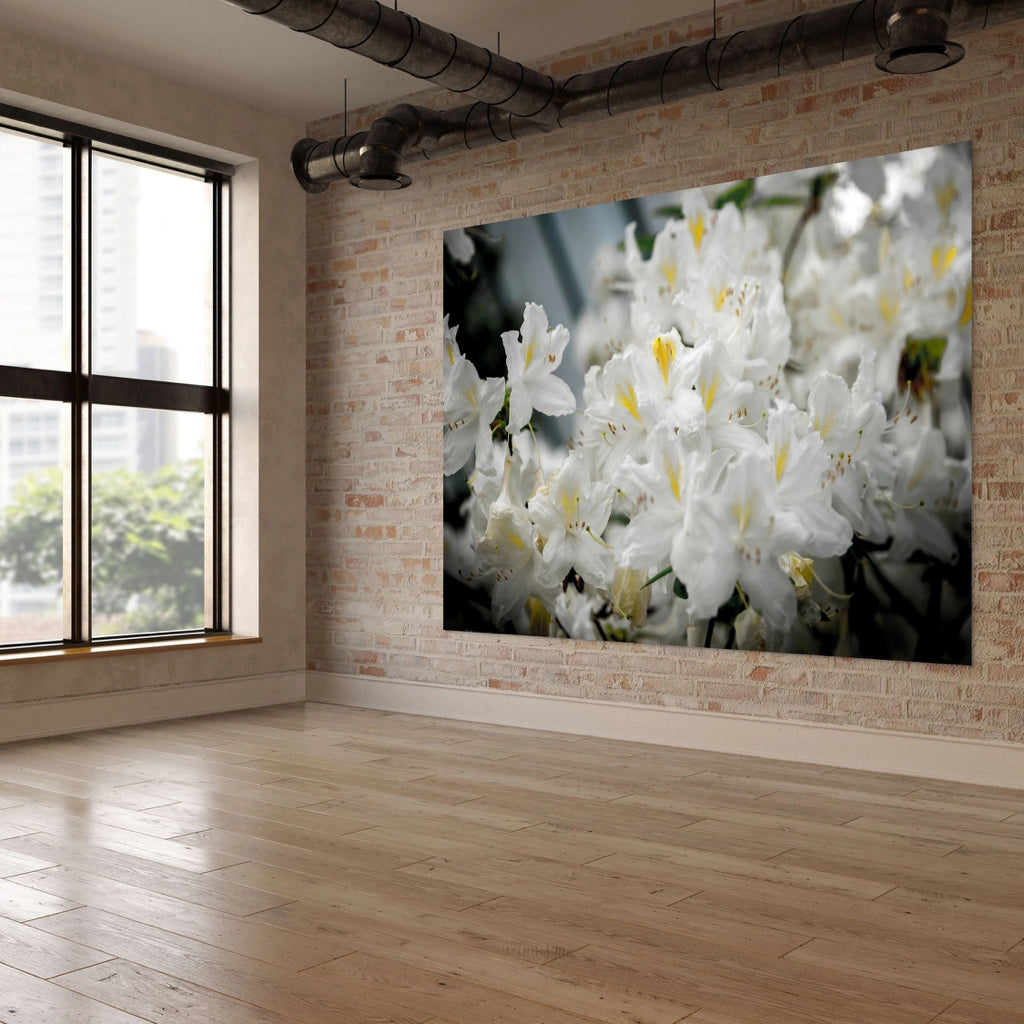 Discover the beauty of spring with our photography of a white cherry tree and its delicate flowers in white and yellow. Awaken your senses and let yourself be inspired by the freshness and purity of this image. Celebrate nature with this beautiful addition to your decor.