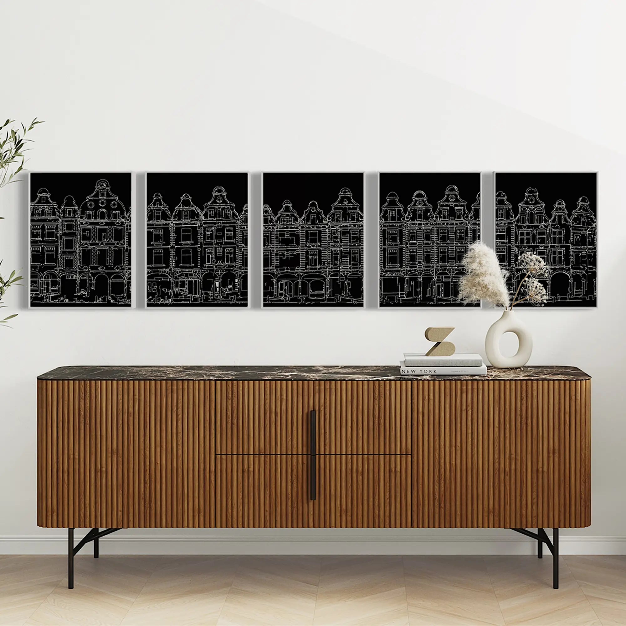 Discover a superb original work by Jacques Goffin! The panorama of Heroes’ Square comes to life in the form of five panels, reworked with white lines on a black background. Add this unique piece to your space for an artistic and inspiring touch, whether in an office or home.