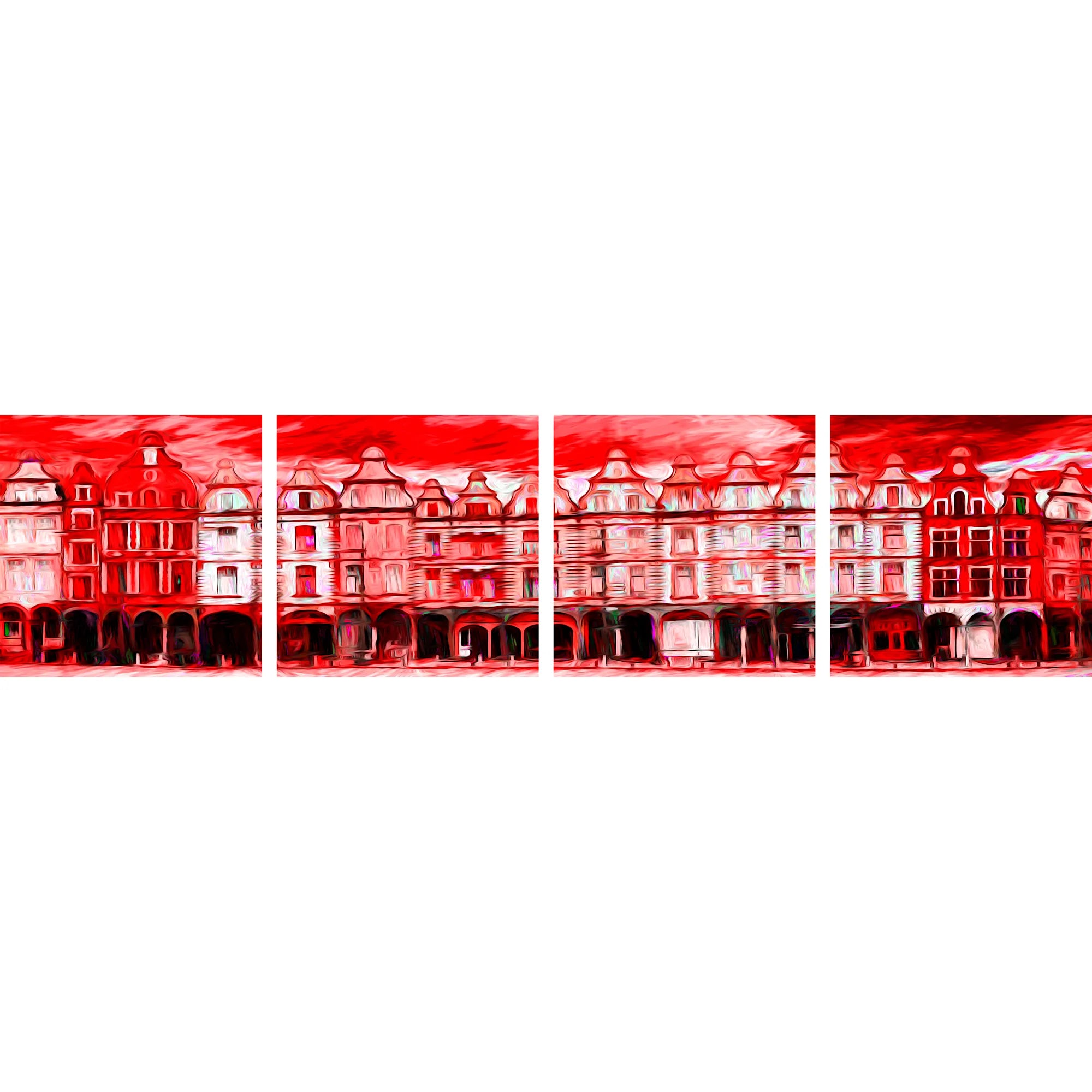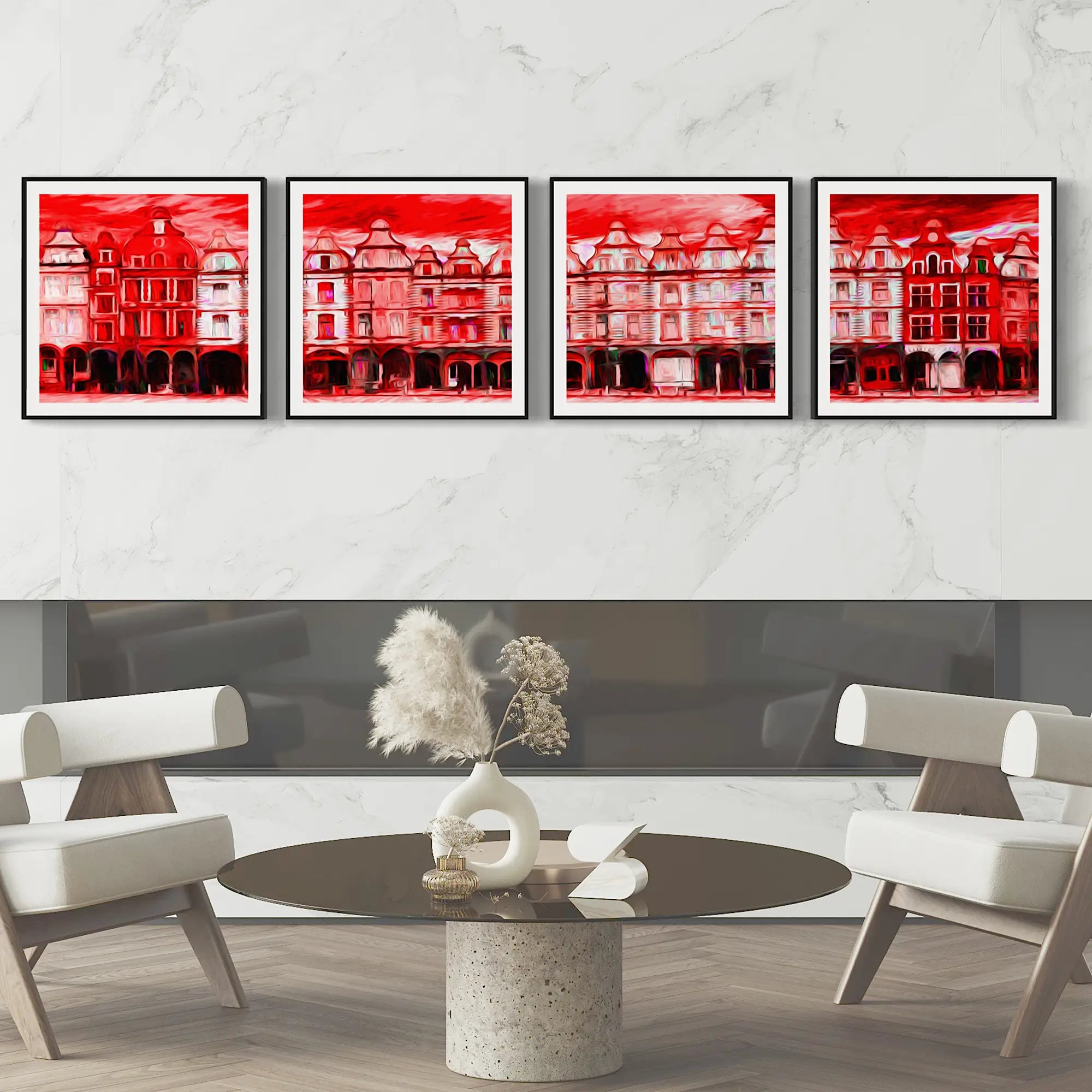 Quadriptych: the houses of the squares of Arras in liquid red version