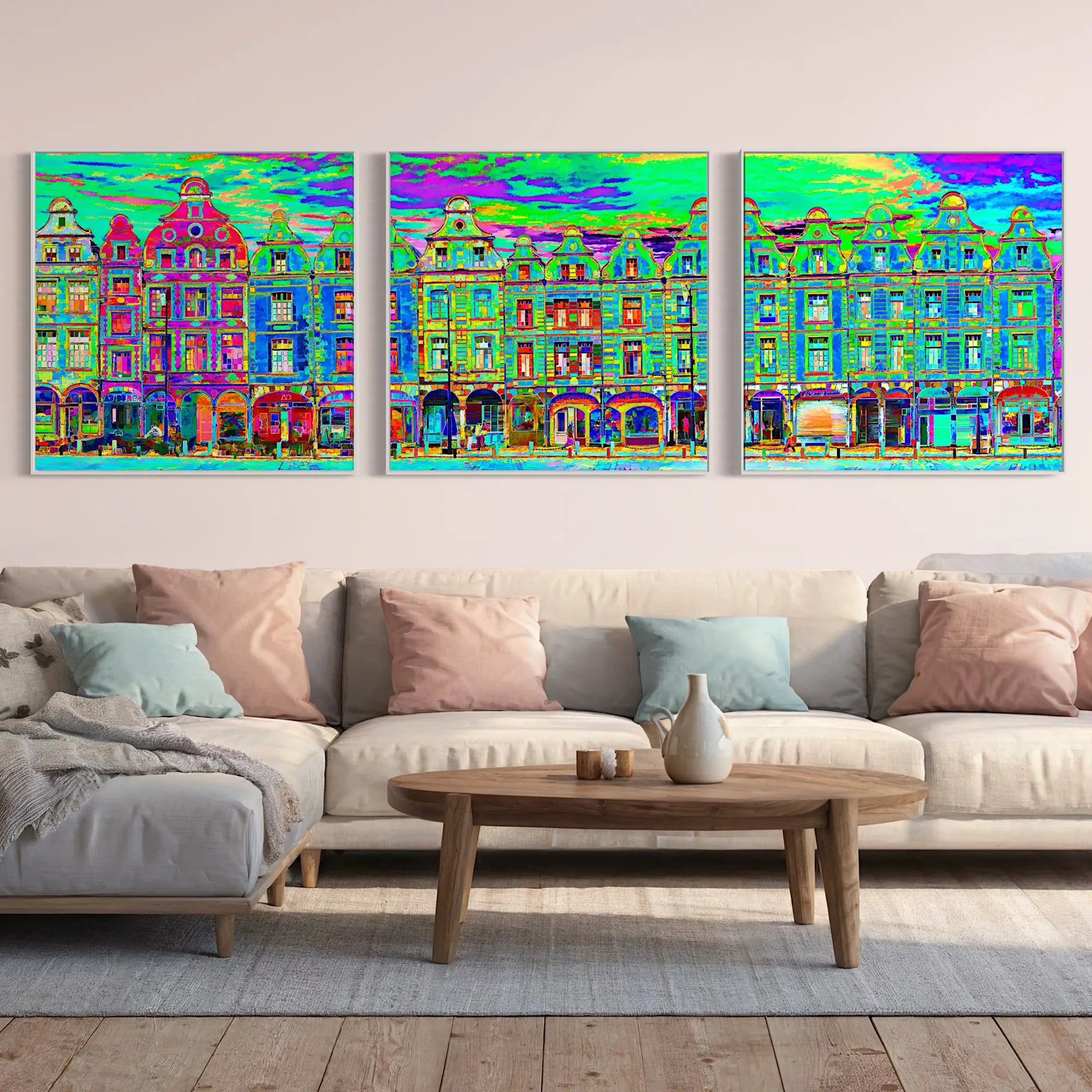 Available in a triptych version in square format, it is an exclusive that captures the beauty and atmosphere of this historic city. A unique and artistic souvenir to bring a touch of sophistication to your interior!