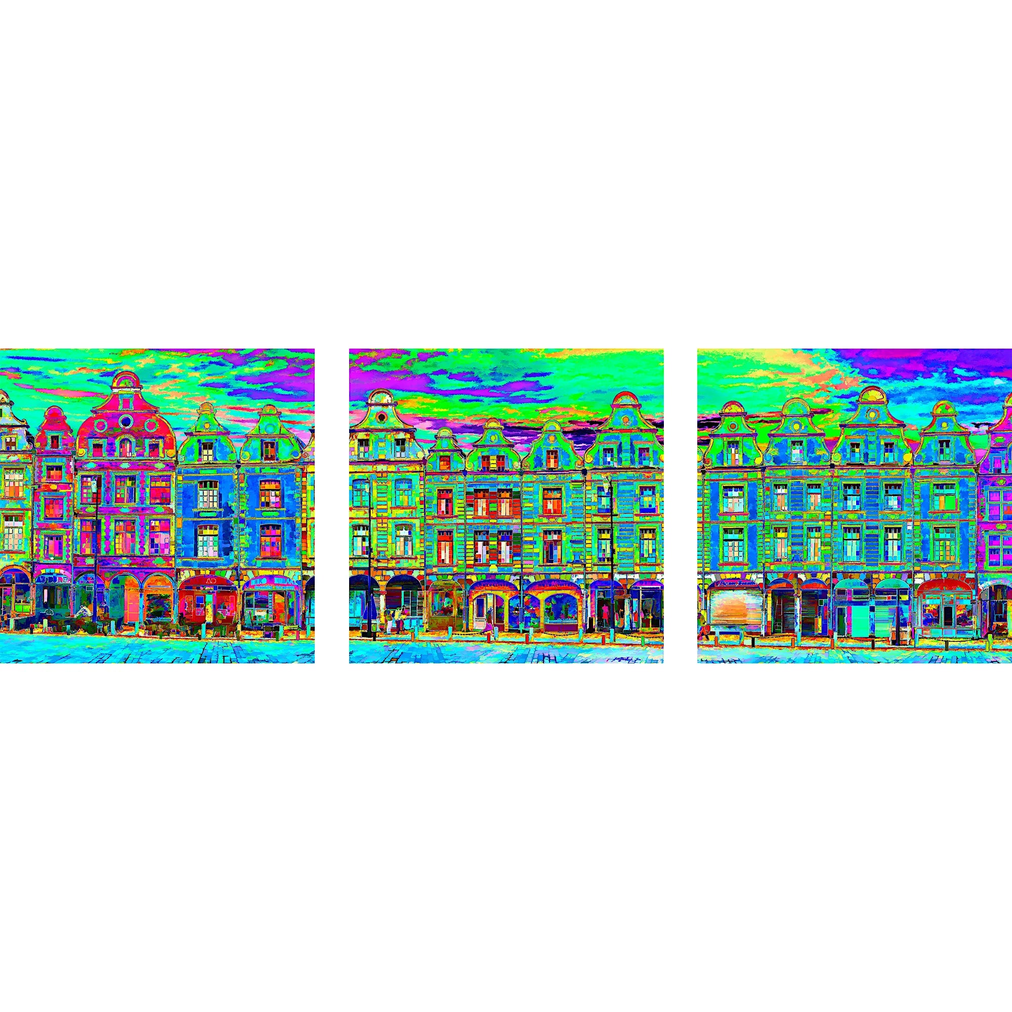 Triptych Arras, houses of squares, green psyche