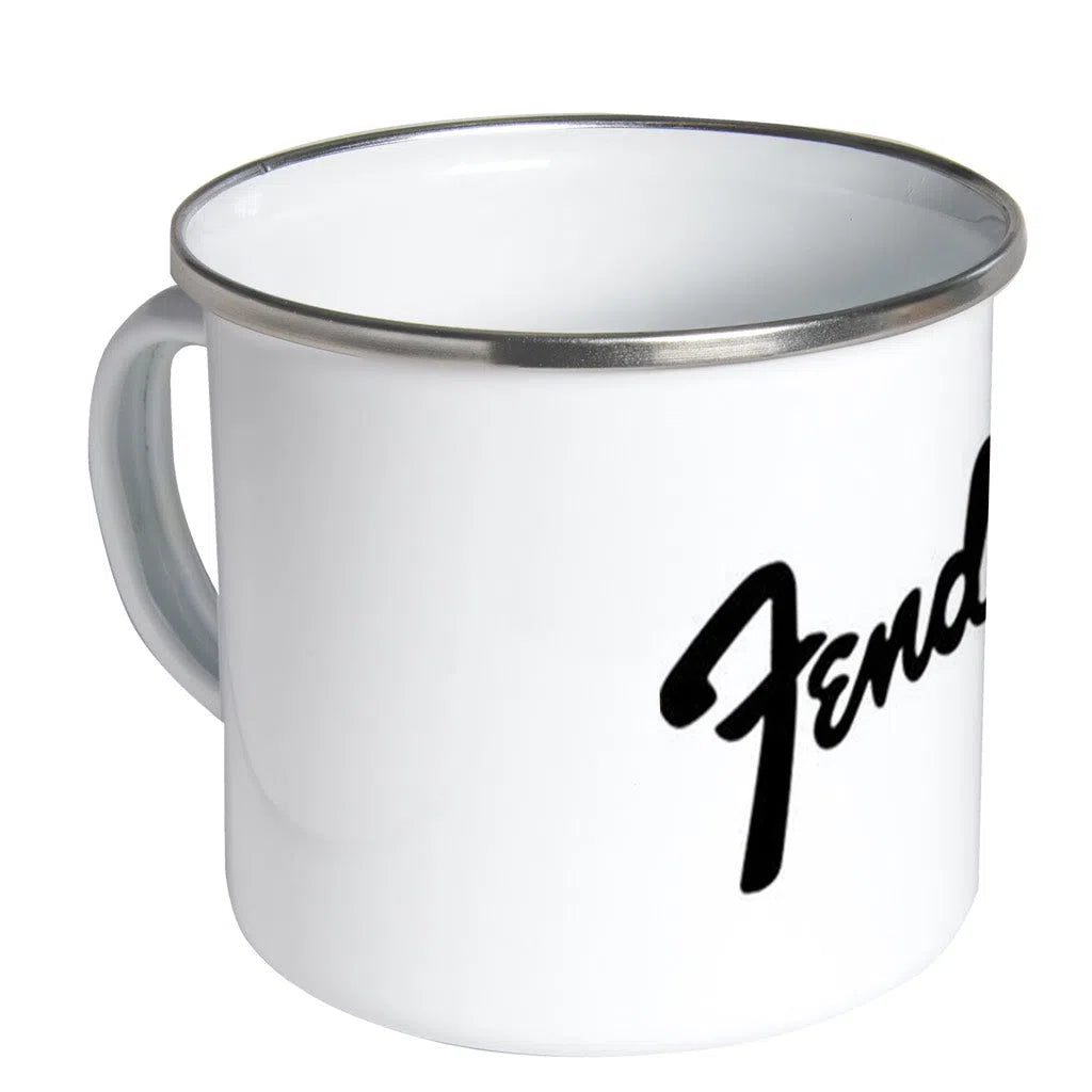 White enamel mug with aluminum rim.