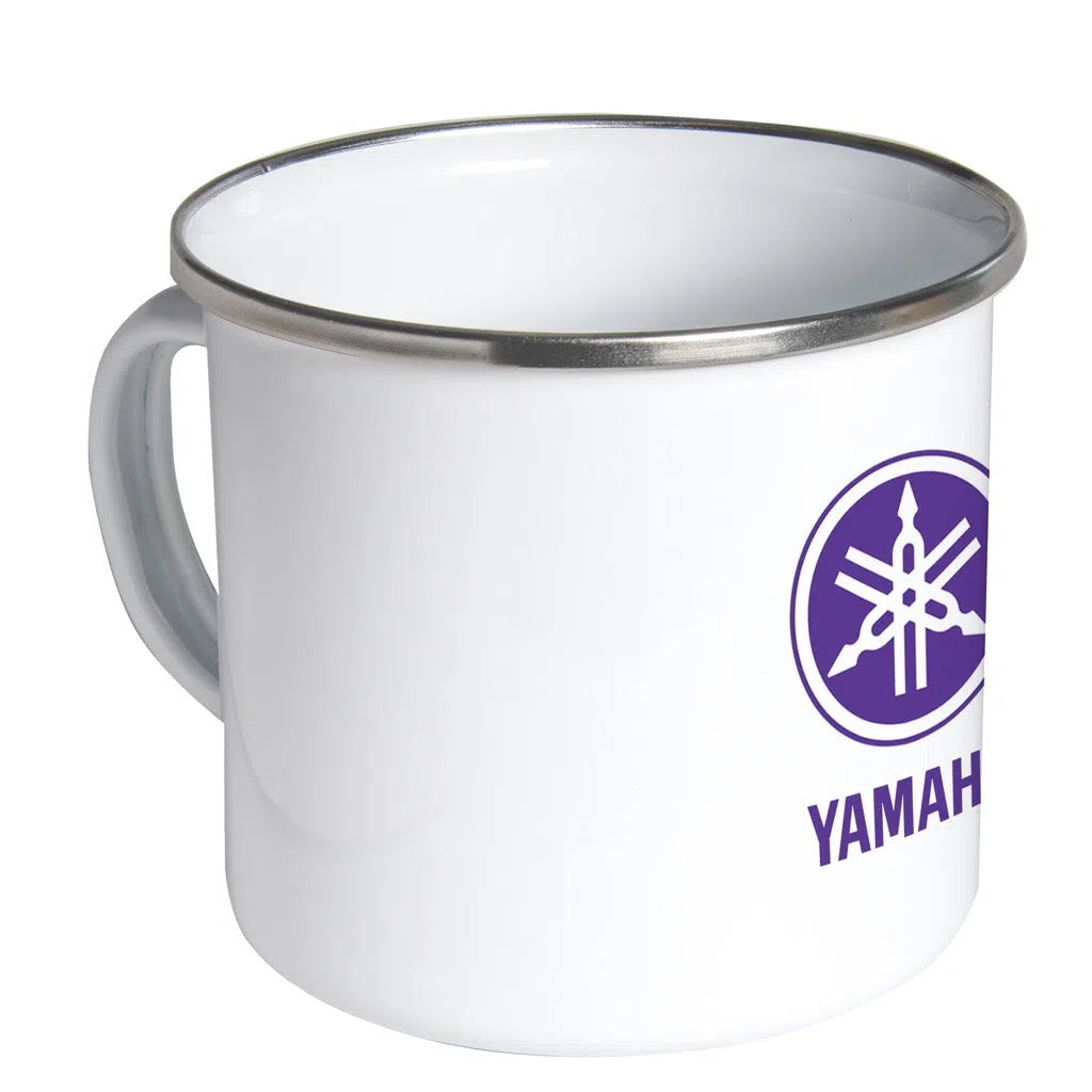 White enamel mug with aluminum rim.