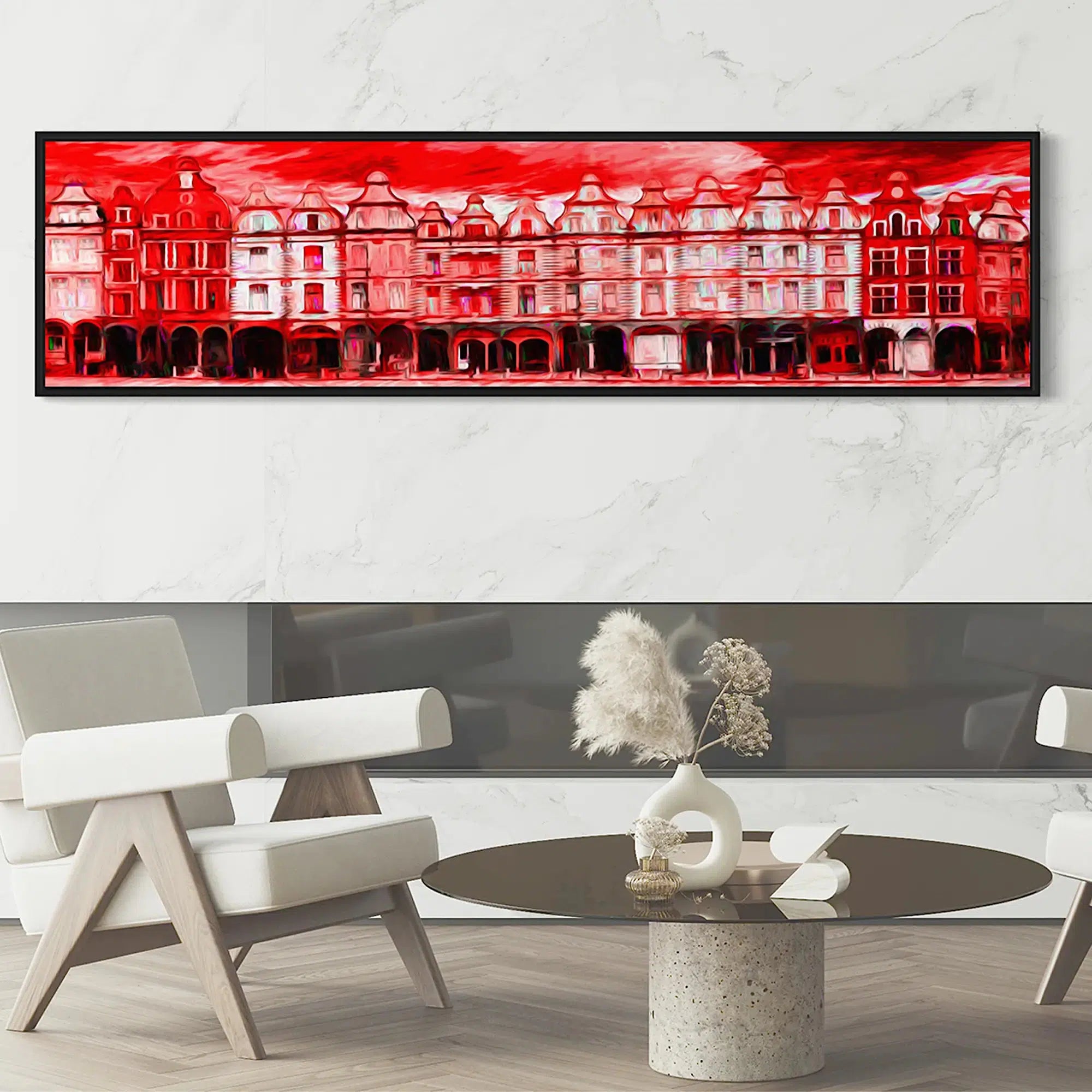 Panoramic view of the houses in the squares of Arras, Liquid red