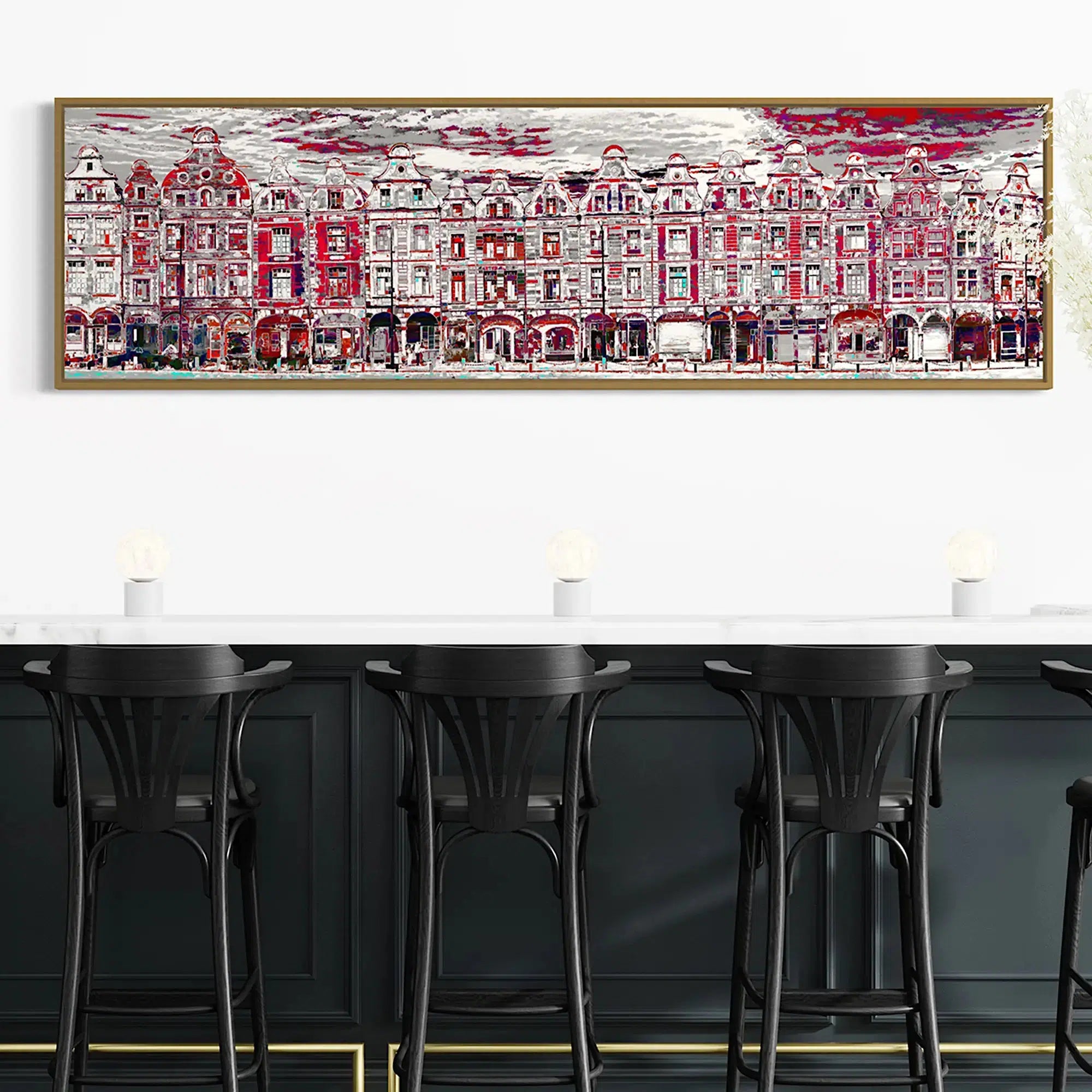 The facades of the Place des Héros in Arras , presented in panoramic, black and red version.