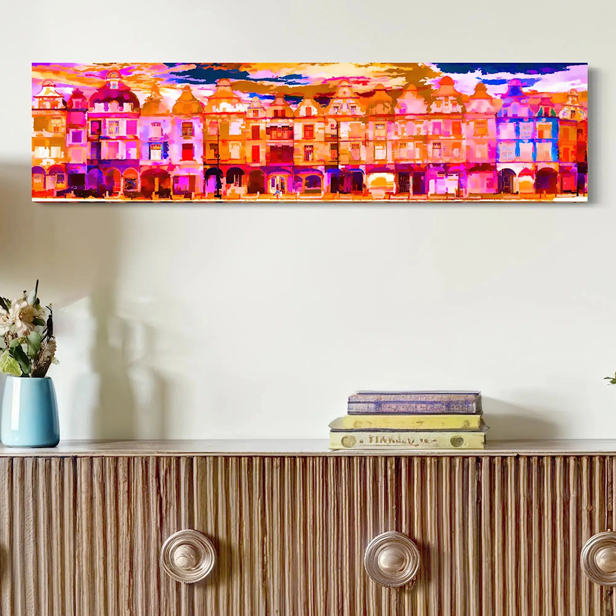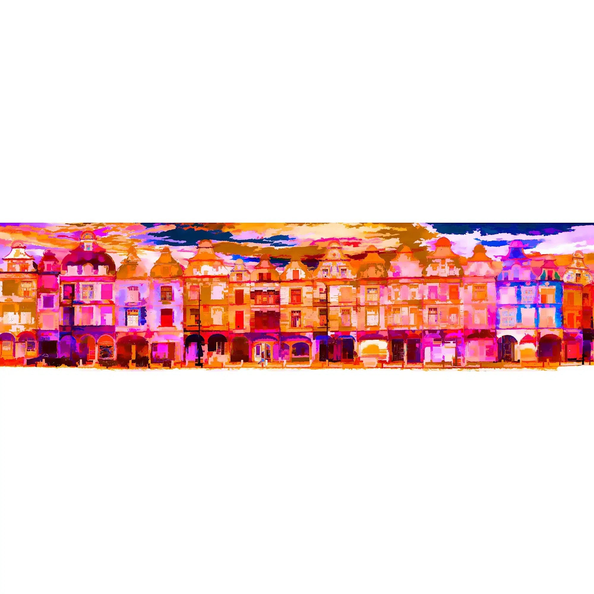 In Arras , panoramic view of the facades of the Place des Héros reworked in aquarose version.