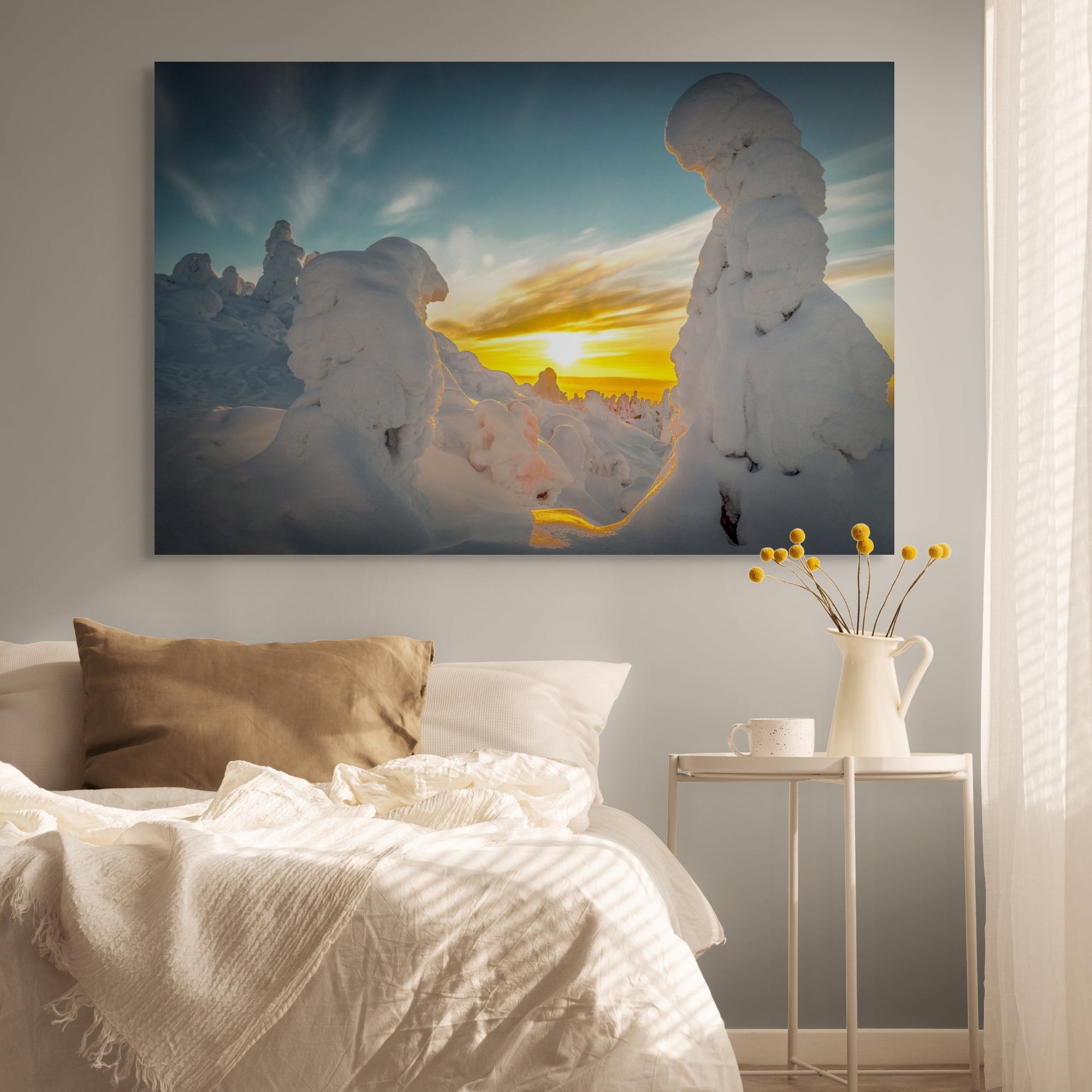 Marvel at the snow-covered trees, yellow sunrise against a blue sky and bitterly cold temperature. A unique experience not to be missed.