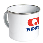 White enamel mug with aluminum rim.