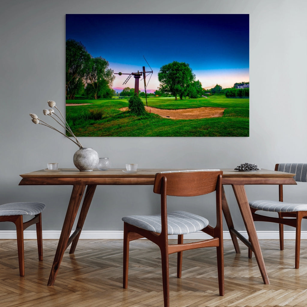 This magnificent photograph taken very early, at sunrise, adds a touch of grace to the Arras golf course. The dark blue sky acts as a backdrop for this ancient water machine, creating a serene and mysterious ambiance.