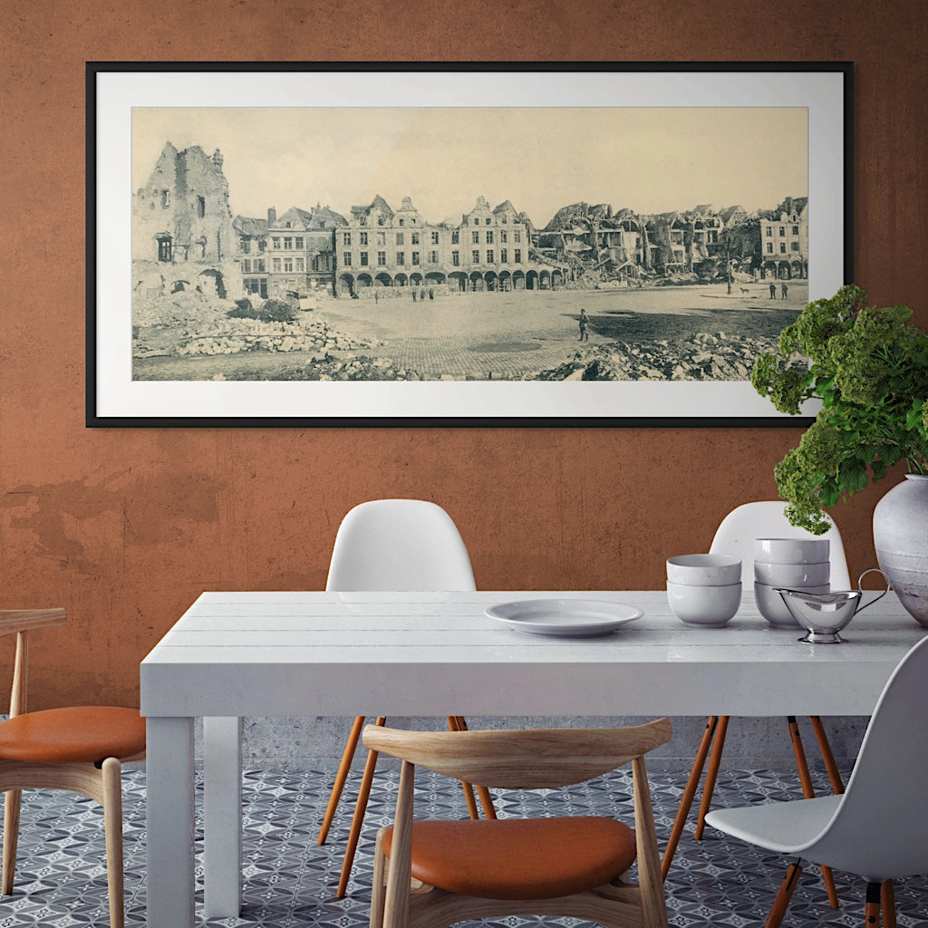 Photo print with standard frame: print on Fine Art paper, mat in white cardboard with beveled edges and acrylic glass.
