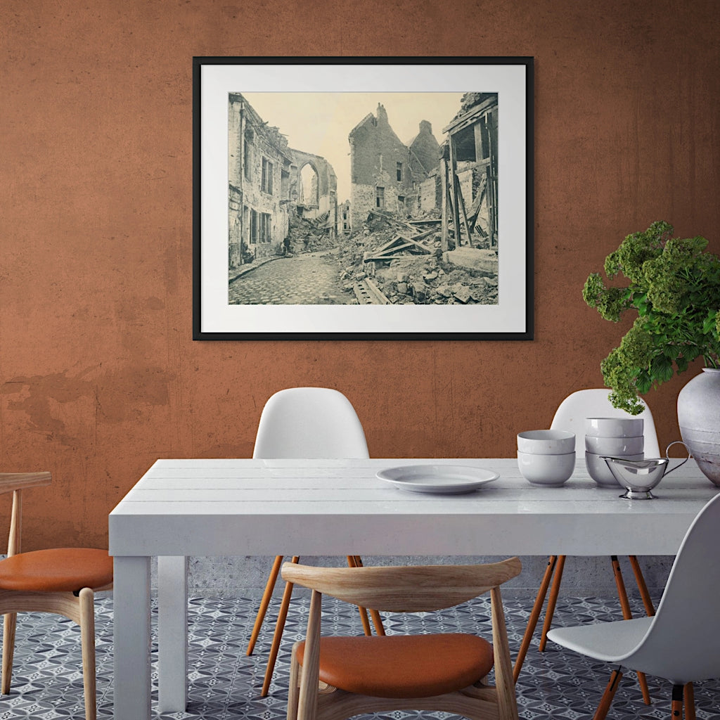 Photo of the Rue de l'Ermite and the ruins of the Saint-Jean-Baptiste church taken after the end of the First World War.